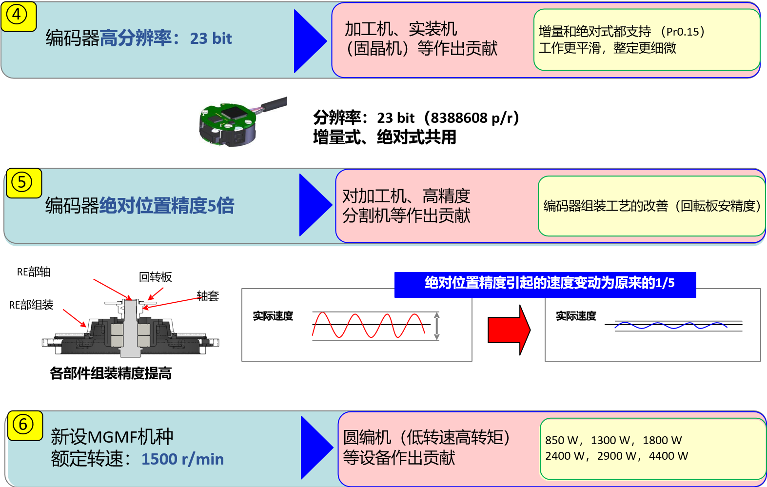 ①高分辨率:23bit絕對式和增量式共用,低震動,高精度