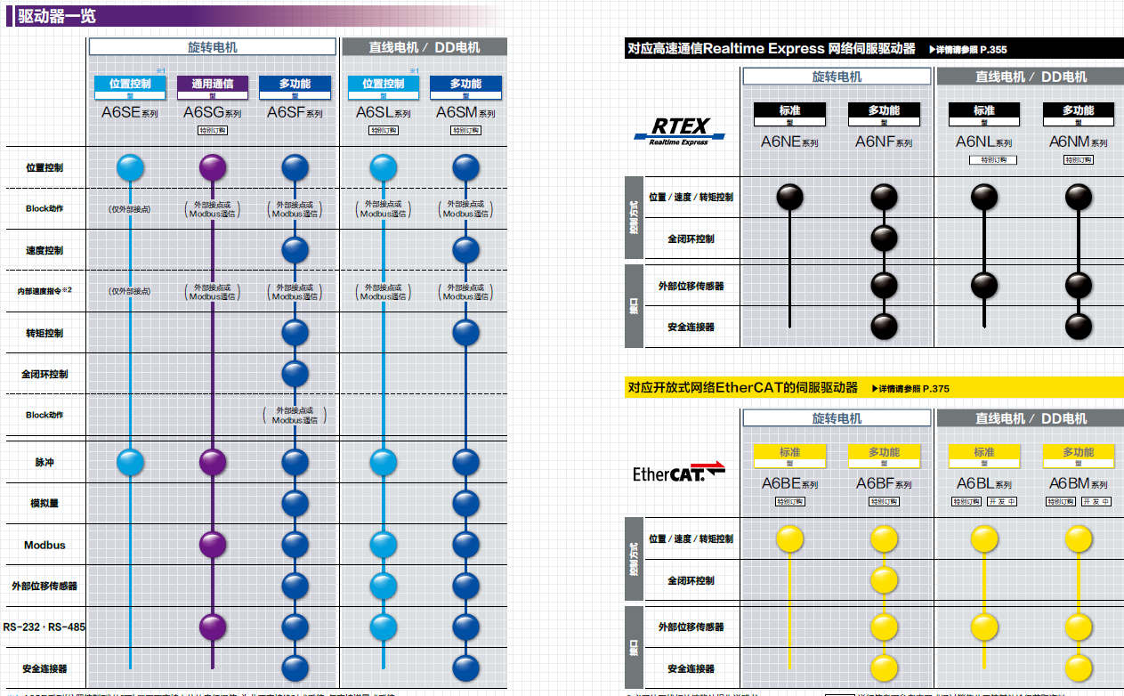 ③網(wǎng)絡(luò)對應(yīng):RTEX,EtherCat