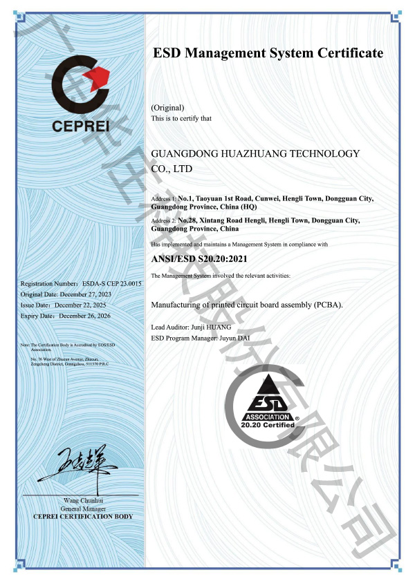 ANSI/ESD S20.20 廣東華莊(桃園廠新塘廠)