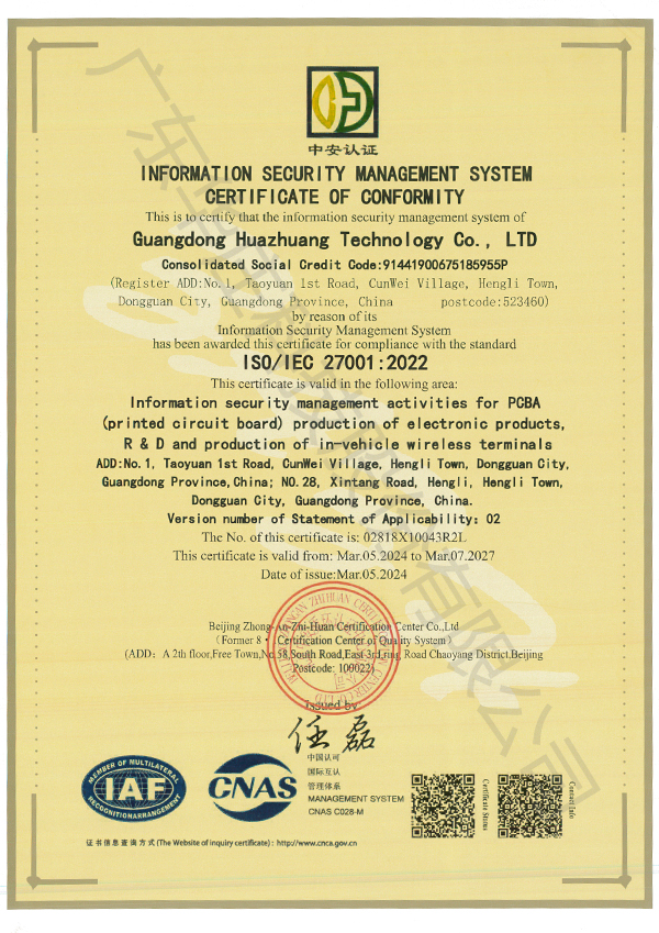 ISO/IEC 27001 廣東華莊(桃園廠新塘廠)